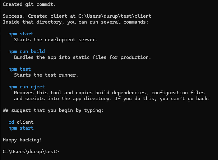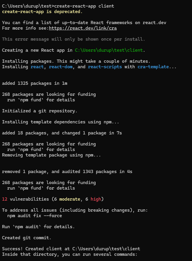 creact-react-app client 명령어로 프로젝트를 생성한다. client 경로에 가면 package.json , node_module등의 파일/폴더가 있다.