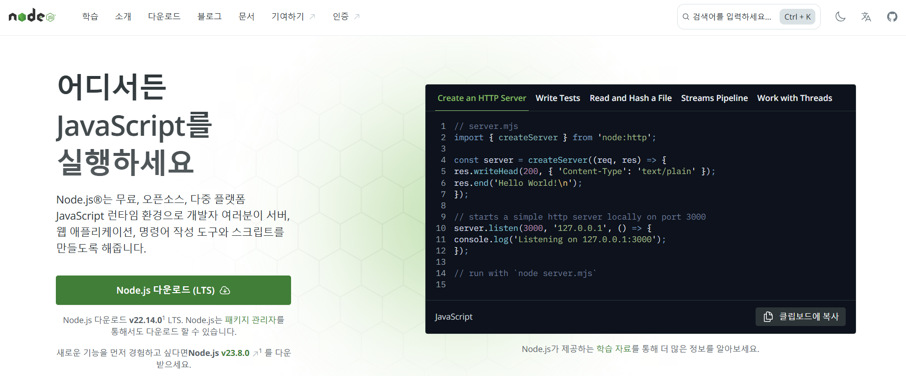 Node.js — 어디서든 JavaScript를 실행하세요