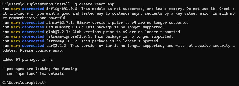 npm install -g create-react-app 으로 create-react-app 을 설치한다.